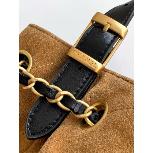 Fecho frontal com o icônico logotipo duplo “CC” em metal dourado.