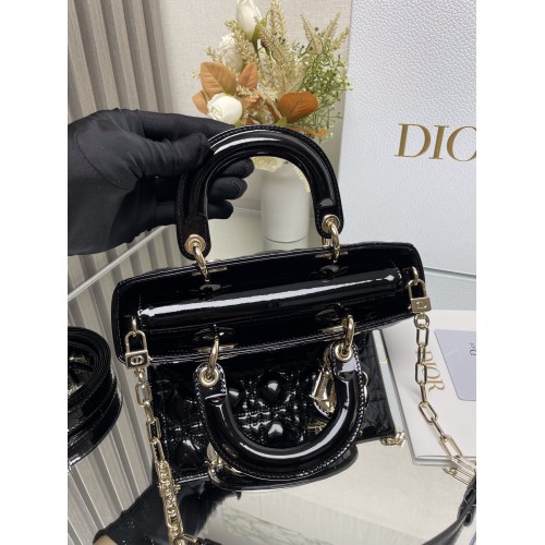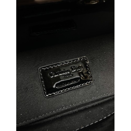Bolsa Dior Lady Super Mini Verniz Preta com Metal Prata A Bolsa Dior Lady Super Mini em verniz na c..