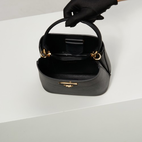 A Bolsa Prada Mini Panier Bucket é a perfeita tradução de luxo minimalista e elegância contemporânea. Seu design estruturado em formato bucket aliado ao icônico couro Saffiano italiano cria uma peça versátil, moderna e extremamente sofisticada, ideal para mulheres que valorizam estilo em cada detalhe.
