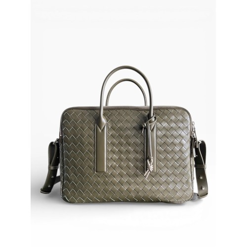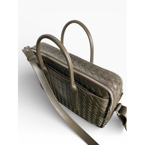 A tonalidade verde escuro oferece sobriedade e exclusividade, sendo ideal para quem procura uma pasta Bottega Veneta couro intrecciato réplica premium sofisticada, perfeita para ambientes executivos e viagens de negócios.